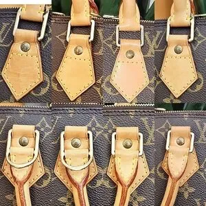 this is pre-owned but very well loved. with minor stains, creases, scuffs. this bag is in Beautiful shape. minor tarnishing on metal but zipper works good. no foul odor.