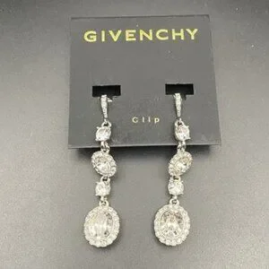NWT Givenchy Clip Earrings Crystal Halo Set 2.5" Drop Silver Tone Bridal Pageant