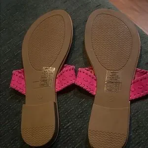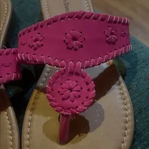 Chic pink sandals with intricate cut-out design. Perfect for casual outings.