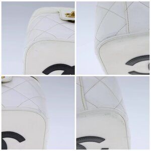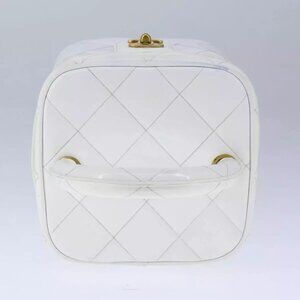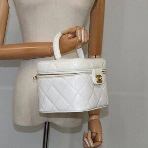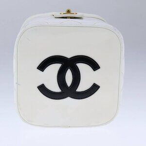 CHANEL Matelasse Vanity Cosmetic Pouch Patent leather White Gold CC Auth PP147