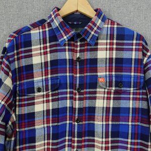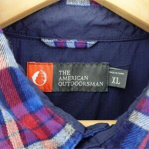 The American Outdoorsman XL Flannel Shirt Blue Red Plaid Long Sleeve Cotton