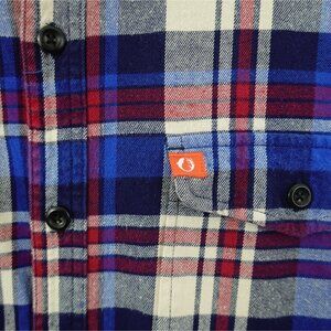 Description: Stay warm and stylish with this The American Outdoorsman flannel shirt in a bold navy, red, and white plaid. Features dual button-flap chest pockets and full button closure. Perfect for layering on outdoor adventures or everyday casual wear. Made from a soft, durable cotton blend with a classic fit.