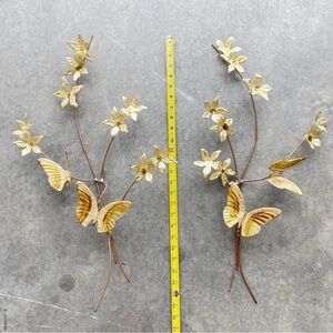 Homeco Vintage MCM 3D Brass & Copper Butterfly Leaf Flower Wall Art 4 Pieces