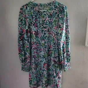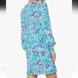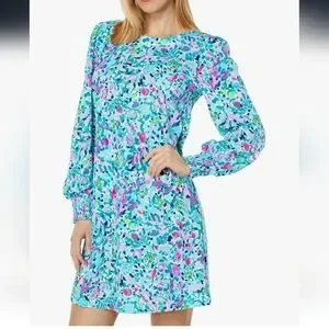 Lilly Pulitzer Diann Long Sleeve Mini Dress Smocked Printed Cotton S