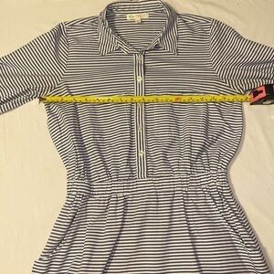 Womens Blue and White Striped Button Up Collared Dress Size Medium NWOT