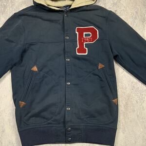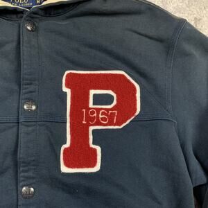 Polo Ralph Lauren Jacket Mens Medium Blue Letterman Varsity Hooded 1967 Casual