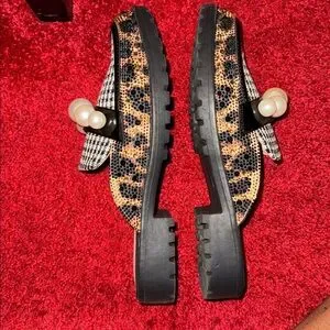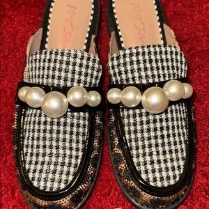 Fun prints and oversized pearls! Very comfortable mules! Only worn once.