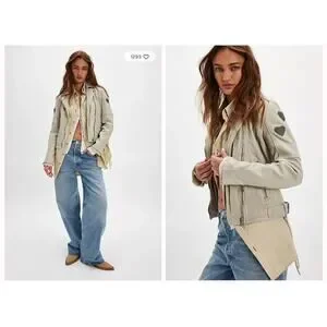 Keywords: vintage, 2000s, 90s, Y2K, boho, bohemian, moto, motorcycle, hip, hipster, folk art, artsy, art to wear, lagen, lagenlook, mixed media, abstract, utility, utilitarian, granny, grandma, coastal, cowboy coastal, cowboy, cowgirl, festival, cottage, cottagecore, cottage core, shacket, jacket, barn coat, chore coat, farm, cardigan top, prairie, peasant, homestead, milk maid