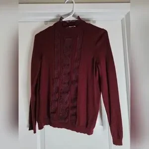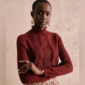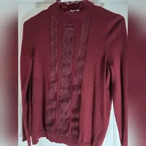 🍷 Sézane Kate Jumper in Burgundy | Size SMALL | Lace Detail Sweater