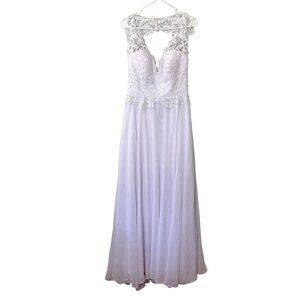 NWT Hebeos white wedding dress formal lace buttons applique women size small