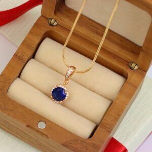 A classic deep purple pendant encircled by shimmering stones, ideal for both elegance and everyday wear.