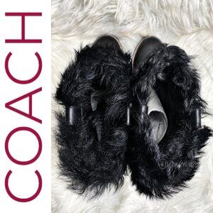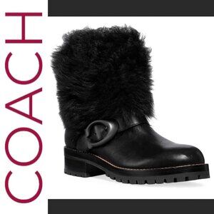 NWT COACH Leighton Shearling Lamb Fur Black Moto Boots, Size 6.5 (EU37)