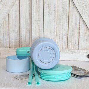 - Leak-Resistant Insulated Lid: Two straws included.