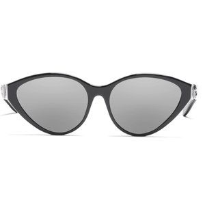 Alexis Bittar x Westward Leaning black cat's eye shape Lynx sunglasses. Luxe rhodium silvertone side inlay accents, mirrored lenses.