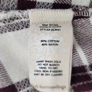 Soft Surroundings Size L Plaid Burgundy Purple 3/4 Sleeve Cotton Blend Tunic Top
