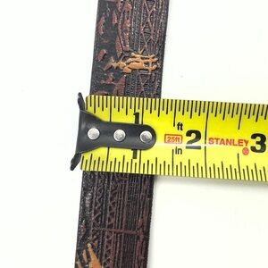 Nocona Western Rodeo Tooled Leather Belt Boys Size 24 Big Buckle Youth Bull Rider Brown