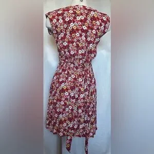 Sleeveless. Attached self tie. Back of waist is smocked. Lightweight. Perfect for beach/pool coverup or an adorable sundress!
