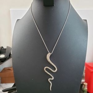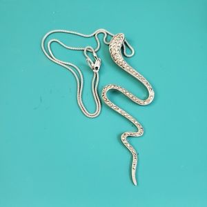 Sterling Silver 925 Snake / Serpent Marcasite Pendant Necklace