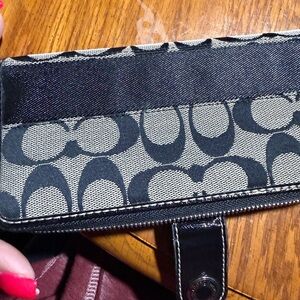 Coach Signature C. Sleek and stylish black wallet for women. Perfect for organizing your essentials with elegance.Leather peeling no rips or tears zippers work perfect clean inside!