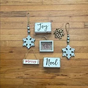 Enhance your holiday decor with this charming rustic ornament set. Featuring a delightful mix of white and red colors, these ornaments bring a festive touch to any home. Perfect for adding a cozy, holiday spirit to your space. Kirklands and Hobby Lobby brands.