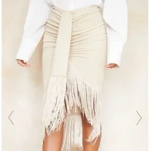 PrettyLittleThing Cream midi tassel midi skirt