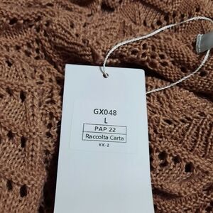 Knit Mix Mauve Sweater Size Large. NWT. The composition is 55% Viscose, 27% Polyester, and 18% Polyamide. Hand wash cold. The sweater is longer in the back. Soft. Stretchy. Textured. Could be worn as a beach cover up. The color of the sweater is slightly darker. The color of the sweater is closest to the pictures with the tag. With the garment laying flat, the measurements are as follows: armpit to armpit is 22 inches and from back of the neck to bottom of the sweater is 47 inches.