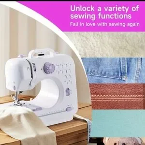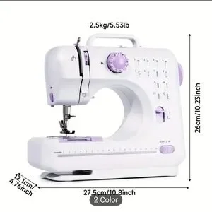 Compact sewing machine in white and purple. Ideal for home use. Great Christmas gift !
