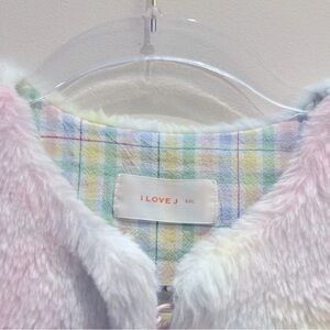 I Love J Pastel Plaid Furry Vest Size 2 XL