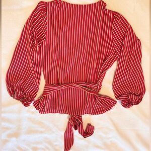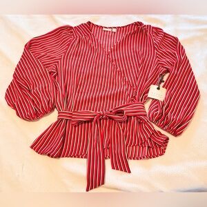 HINGE Red & White Striped Wrap Blouse