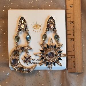 Brand New 14K Gold Plated Alloy Sun & Star Dangly Drop Earrings. Unique & eye-catching!