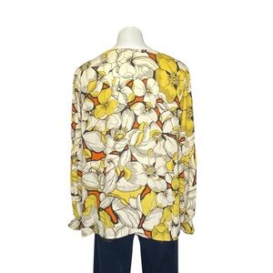 CABI 3954 Sequel Retro Floral Long Sleeve V Neck Blouse Yellow Size XL