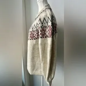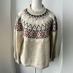 Classic Fair Isle geometric pattern, crewneck sweater. Blend. Minimally work, smoke free home. Very comfy and soft - and warm. Cozy, vintage inspired pattern.