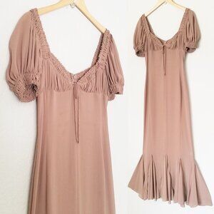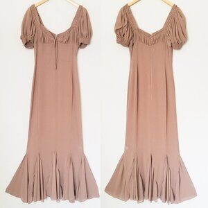 LPA Davina Midi Dress in Mocha Latte Size S Sheer Chiffon Milkmaid Mermaid $259
