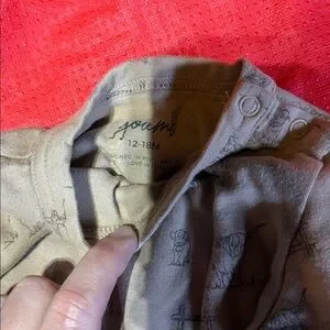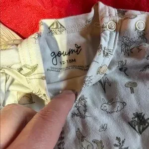 3 Charming baby onesies set by Umi. Features beige and light blue colors with playful patterns.