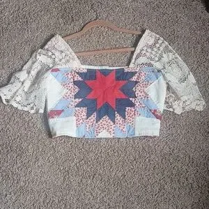 Handmade Cropped Vintage Upcycled Quilt Blouse