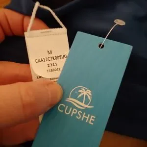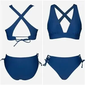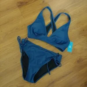 NEW w/ tags CUPSHE Blue Two Piece Set Bikini Swimsuit. V Neck Sports Strap Bralette with Criss Cross Open Back and Lace Up Closure. Mid Low Waist, Mid Low Rise Cheeky Bathing Suit Bottom With Side Lace Up Detail.