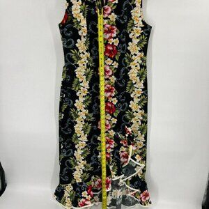 Two Palms Floral Hawaii Sleeveless Midi Ruffle Slit Dress Womens Size M