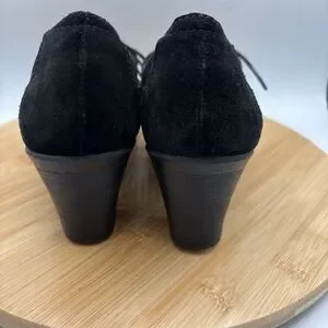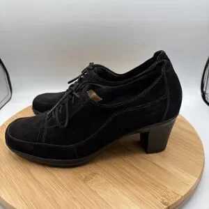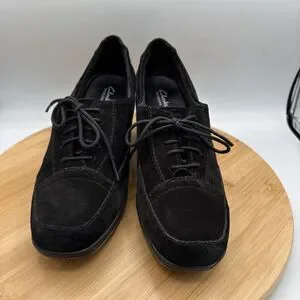 Clarks Bendables Honest Q Black Suede Oxford Pumps Lace Up Womens 8 W Wide Shoe