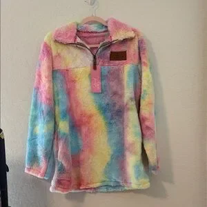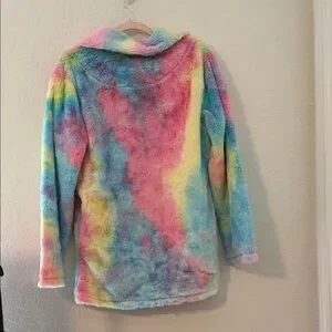 Stay cozy and stylish with this vibrant teddy jacket. Featuring a blend of pink, yellow, and blue hues, it's perfect for adding a pop of color to your wardrobe.