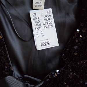 NWT WOMENS H&M BLACK SEQUINS & FRONT BOW CROPPED SHORT SLEEVE EVENING TOP SMALL