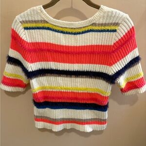 LIKE NEW WORN FOR A FEW HOURS!! Anthropologie Maeve Short-Sleeve Multi-Stripe Eyelash Sweater Women’s Medium. The pit to pit measure 17 inches and the length is approximately 20 inches. This cropped sweater is super soft and cozy!