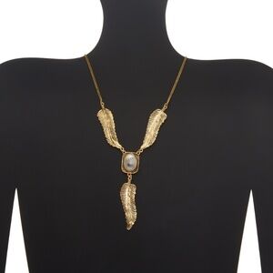 VANESSA MOONEY // ltd ed gold amiga lariat feather detail statement necklace