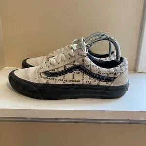 Men's Vans x Supreme Old Skool Pro Grid Pattern Off-White Skate Shoes Size US 7