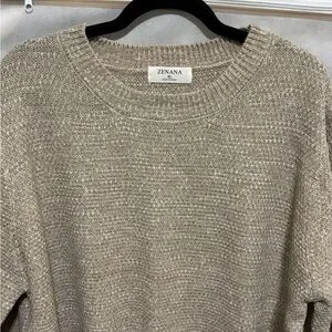 Zenana Outfitters Women's Beige Crew Neck Sweater