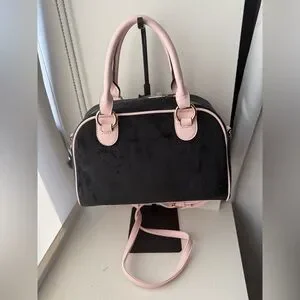 Juicy Couture Black & Pink Velour Handbag w/ Heart Keychain NWT