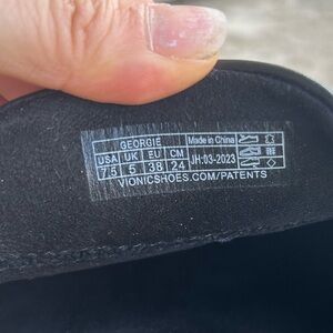 VIONIC Elegant black mules with a striking silver chain. Arch hugging footbed orthotic shoe. Ideal for a stylish and comfortable fit. Pre owned in excellent condition.