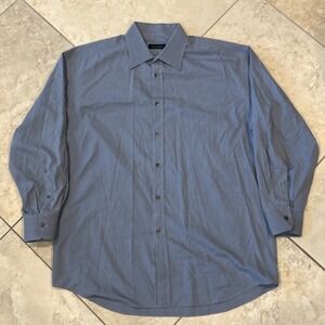 Canali Dress Shirt Mens 43-17 Blue Long Sleeve Button Cotton Italy Preppy Formal