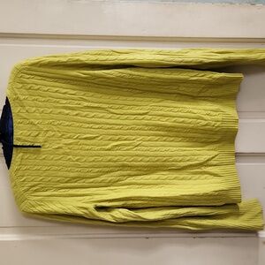 Soft mustard/lime knit sweater. Features a cozy design. Ideal for layering.wool blend