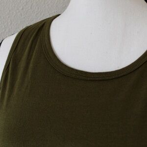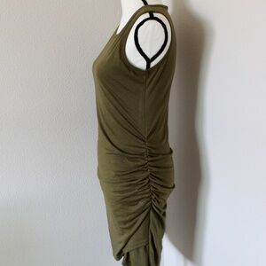 Olive Green Side Ruche Sleevless Bodycon Dress
