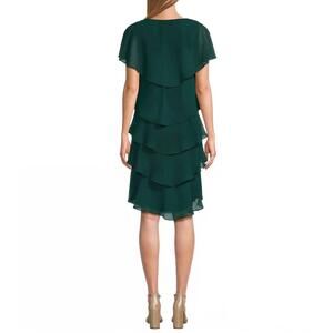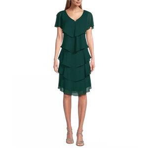 NEW SLNY georgette tiered capelet dress in pine